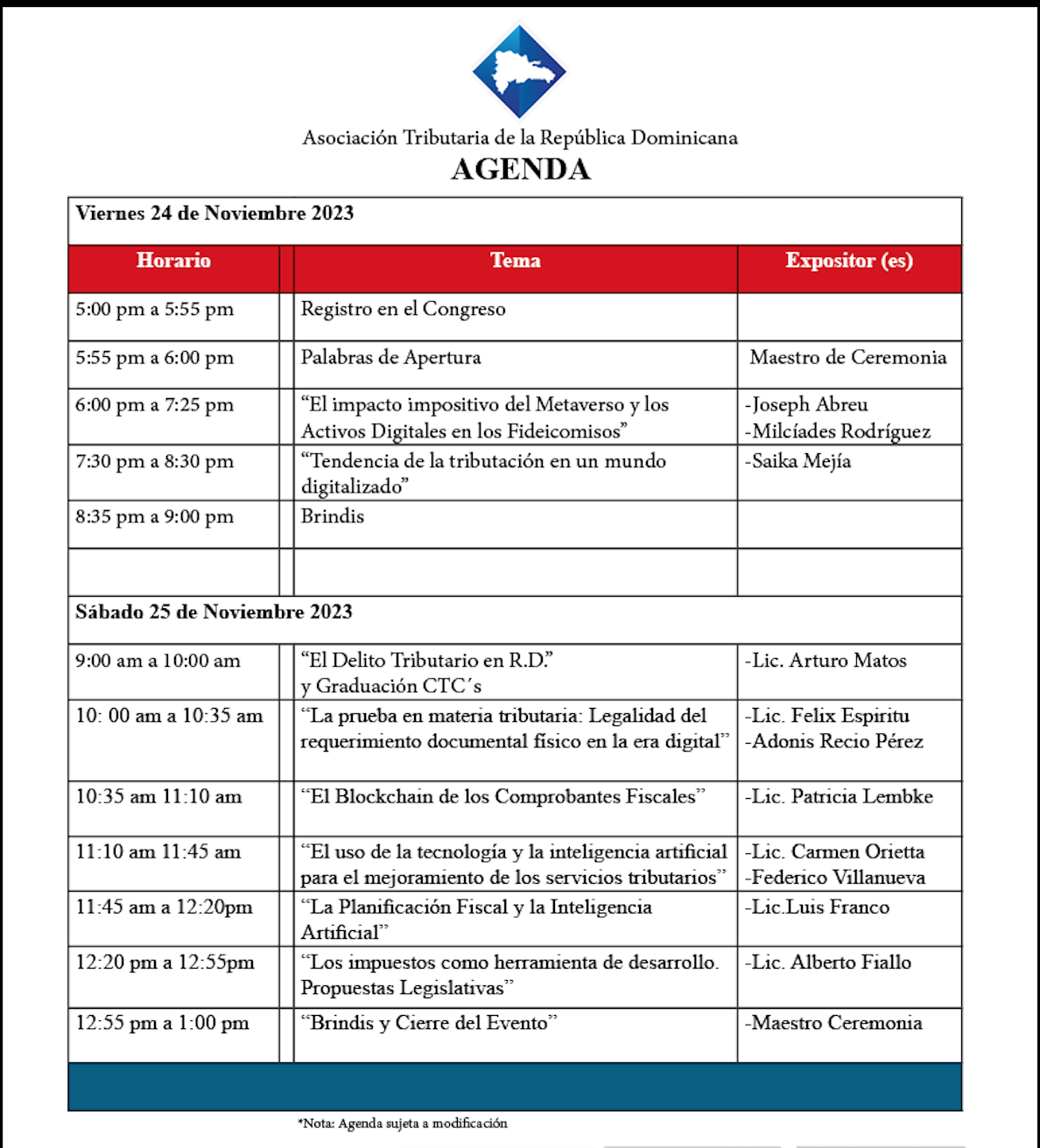 Agenda Congreso Tributario IFA-RD 2023